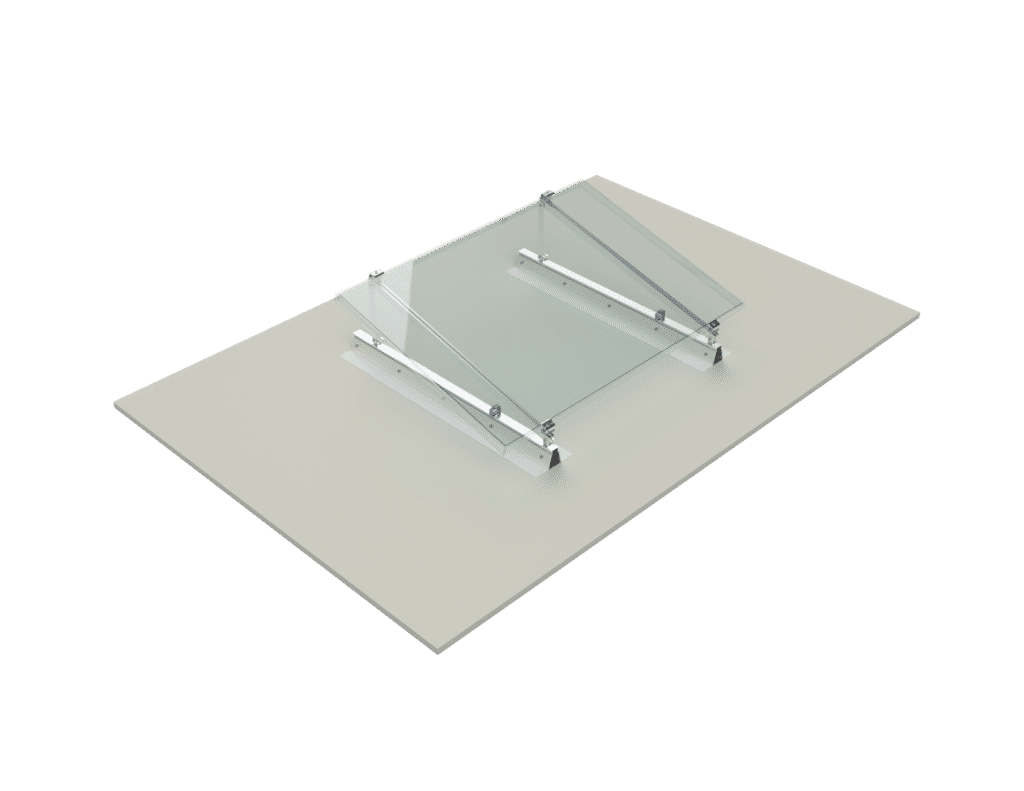 | Composants du système Rails aluminiums de 0.6 m équipés de leurs bandes de maintien, supports d’inclinaison, fixations universelles et extérieures de finition alu/inox, collier passe-câble |