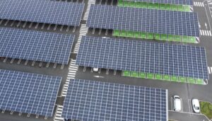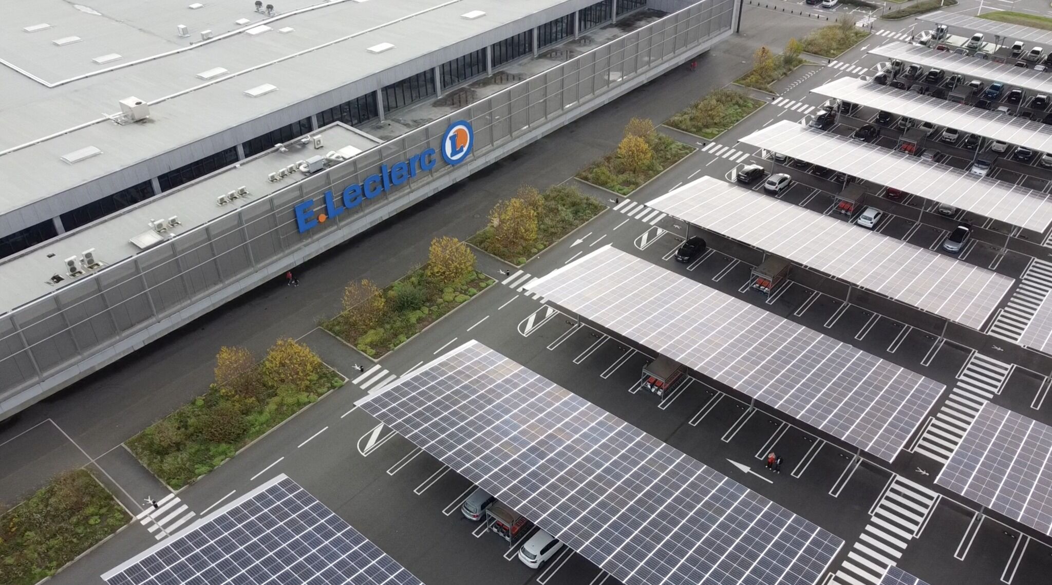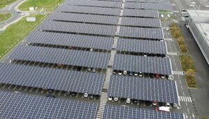 Réalisation : pose de panneaux photovoltaïques sur des ombrières en charpentes métalliques