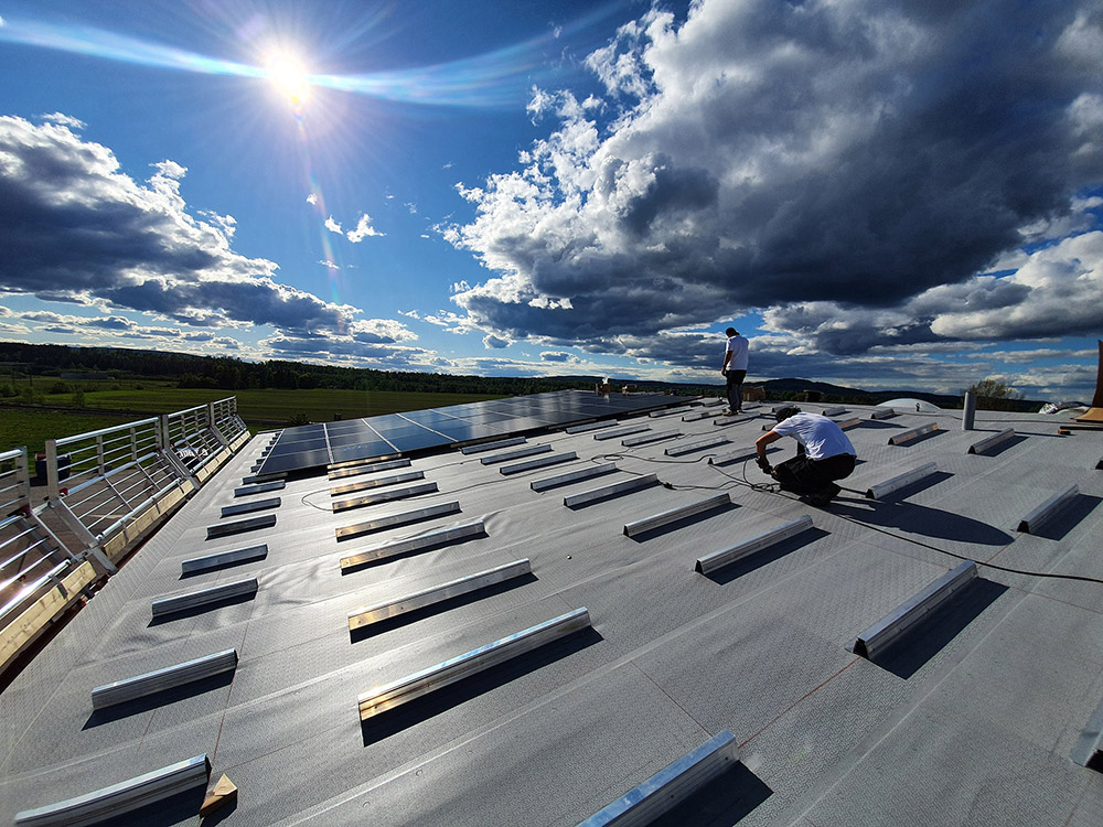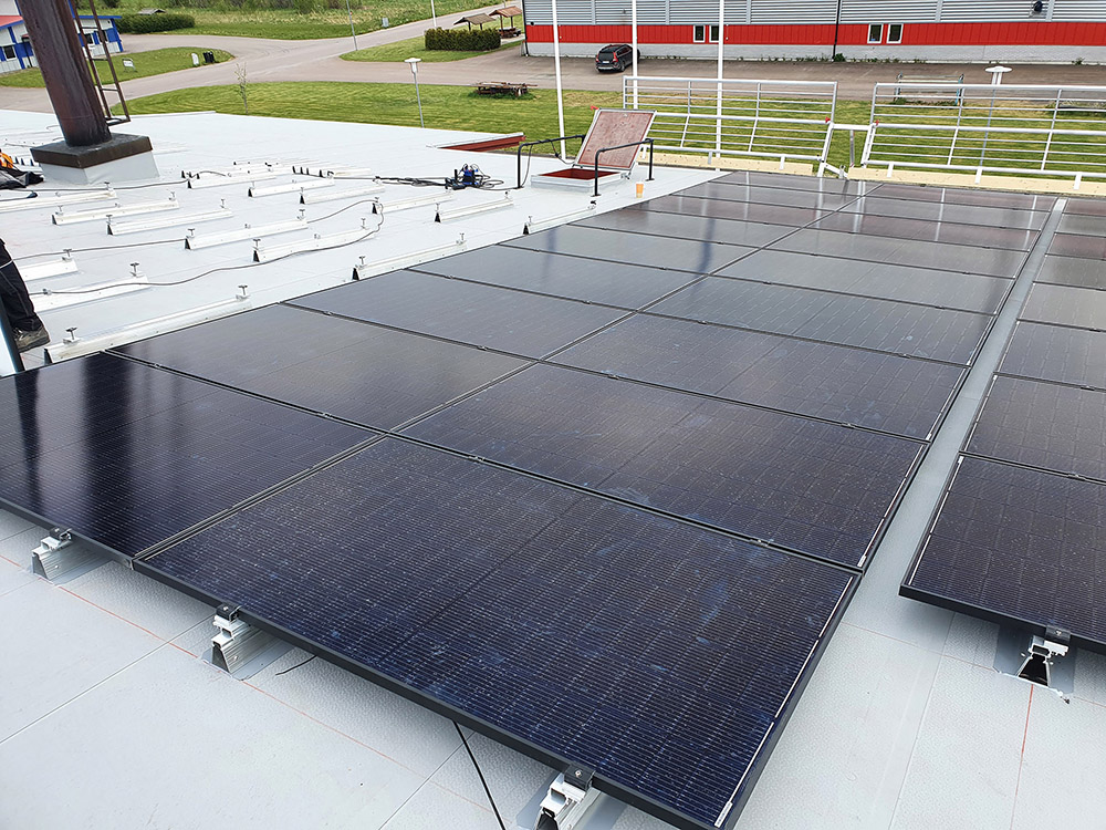 Fotovoltaisk tag på en fabrik, der fremstiller lægeblade til udskrivningssystemer