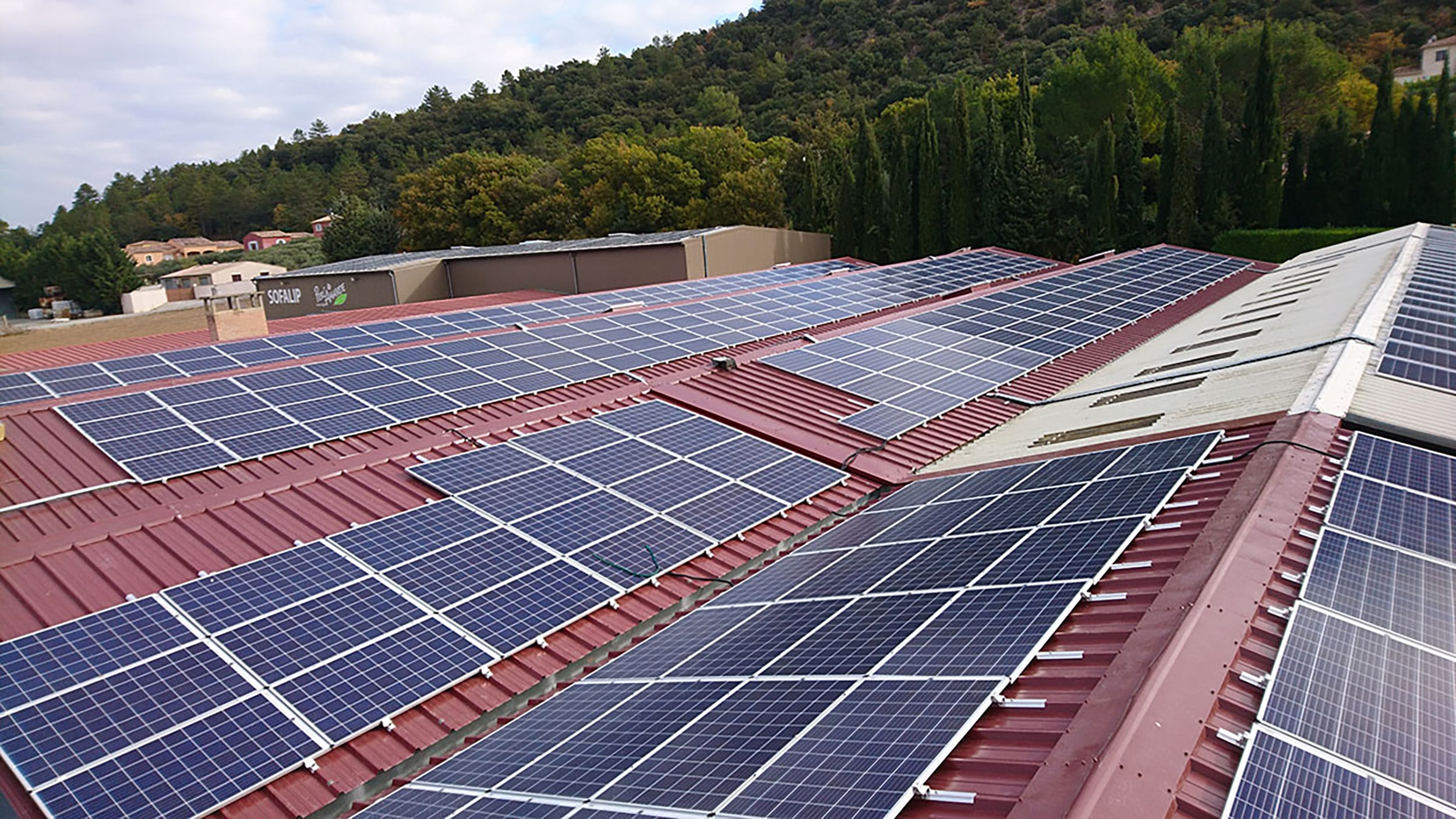 Für das Projekt in Oraison im Jahr 2023 installierte Arkolia Energies unser Ital-Solar-System auf 1.800 m² Dachfläche einer Fabrik, die Bio-Trockenfrüchte verarbeitet, mit einer Kapazität von 250 kWp.