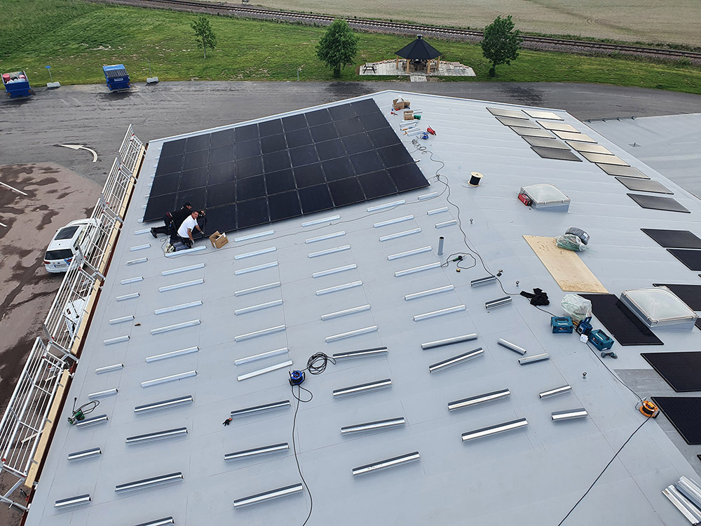 Für das 2020 in Sunne, Schweden, realisierte Projekt installierte Paneltaket AB unser Roof-Solar PVC-System auf 480m² Dachfläche einer Fabrik, die Rakeln für Drucksysteme herstellt, mit einer Kapazität von 84,15 kWp.