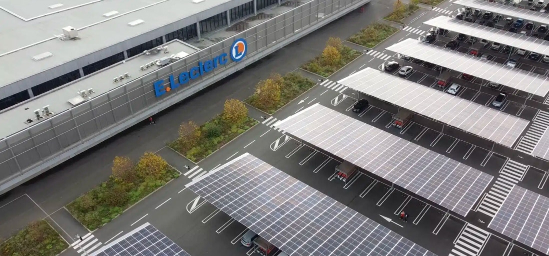 Für das Projekt in Avermes in der Region Auverge-Rhône-Alpes wurde unser Helios RC3-System auf den Photovoltaikschatten des E.Leclerc de Les Portes de l’Allier mit einer Kapazität von 4,40 MWp installiert. Es wurden 1500 Parkplätze auf 22.000 m² überdacht und 70 Ladestationen für Elektroautos installiert.