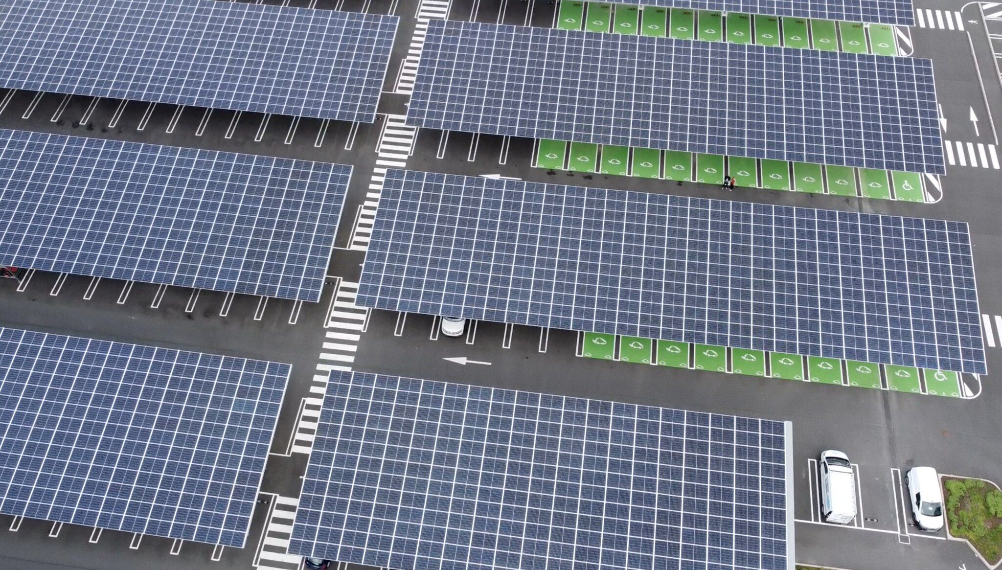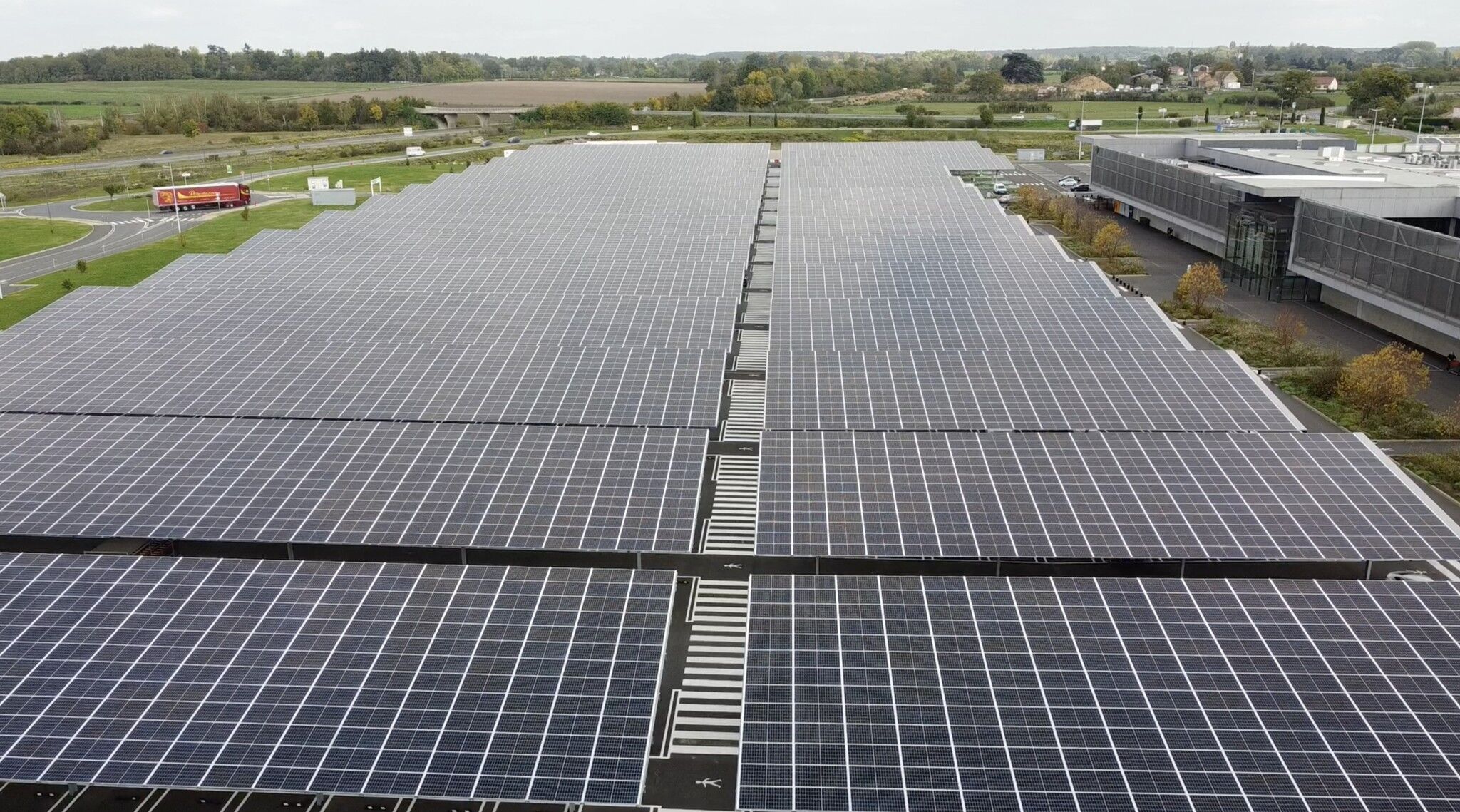 Photovoltaikschirme auf dem Parkplatz eines Supermarktes