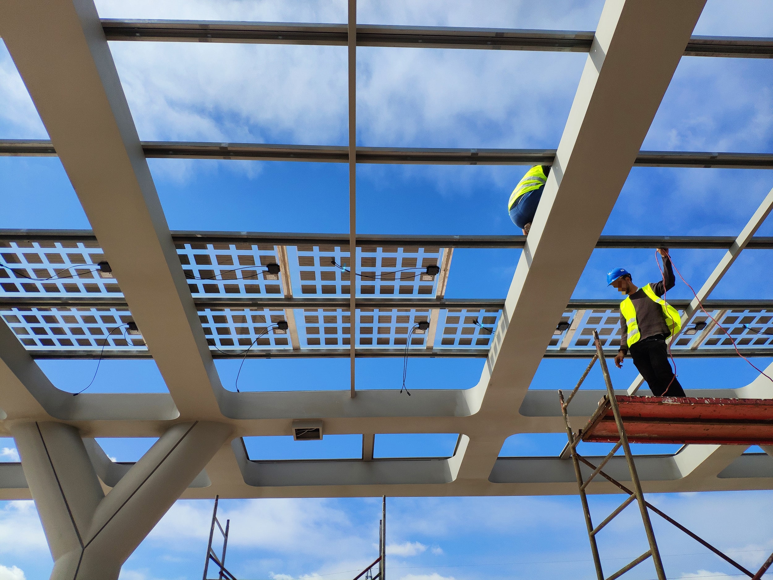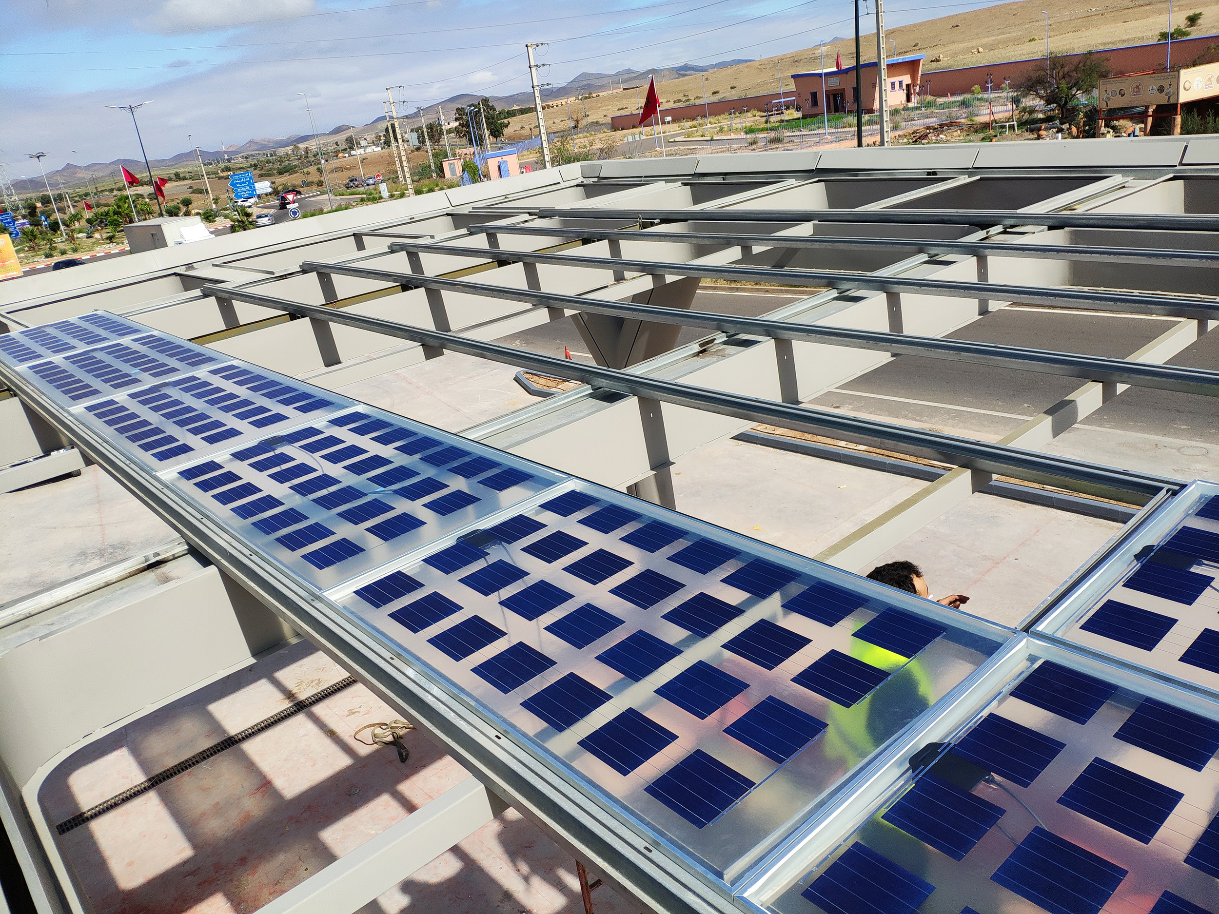 Für das Projekt in Marrakesch, Marokko, das 2019 realisiert werden soll, installierte Isoa unser Helios RC3-System auf den 80 m² großen Parkschatten einer Tankstelle mit einer Kapazität von 6,37 kWp.
