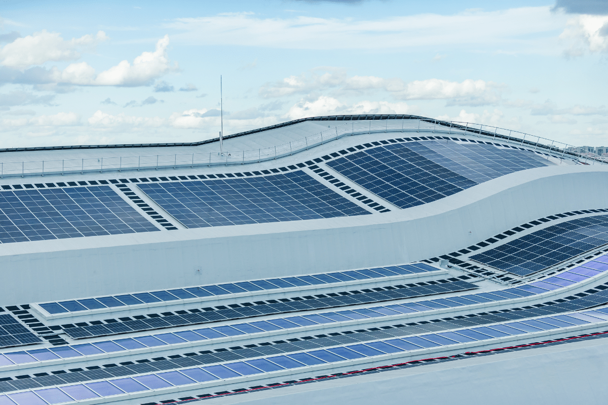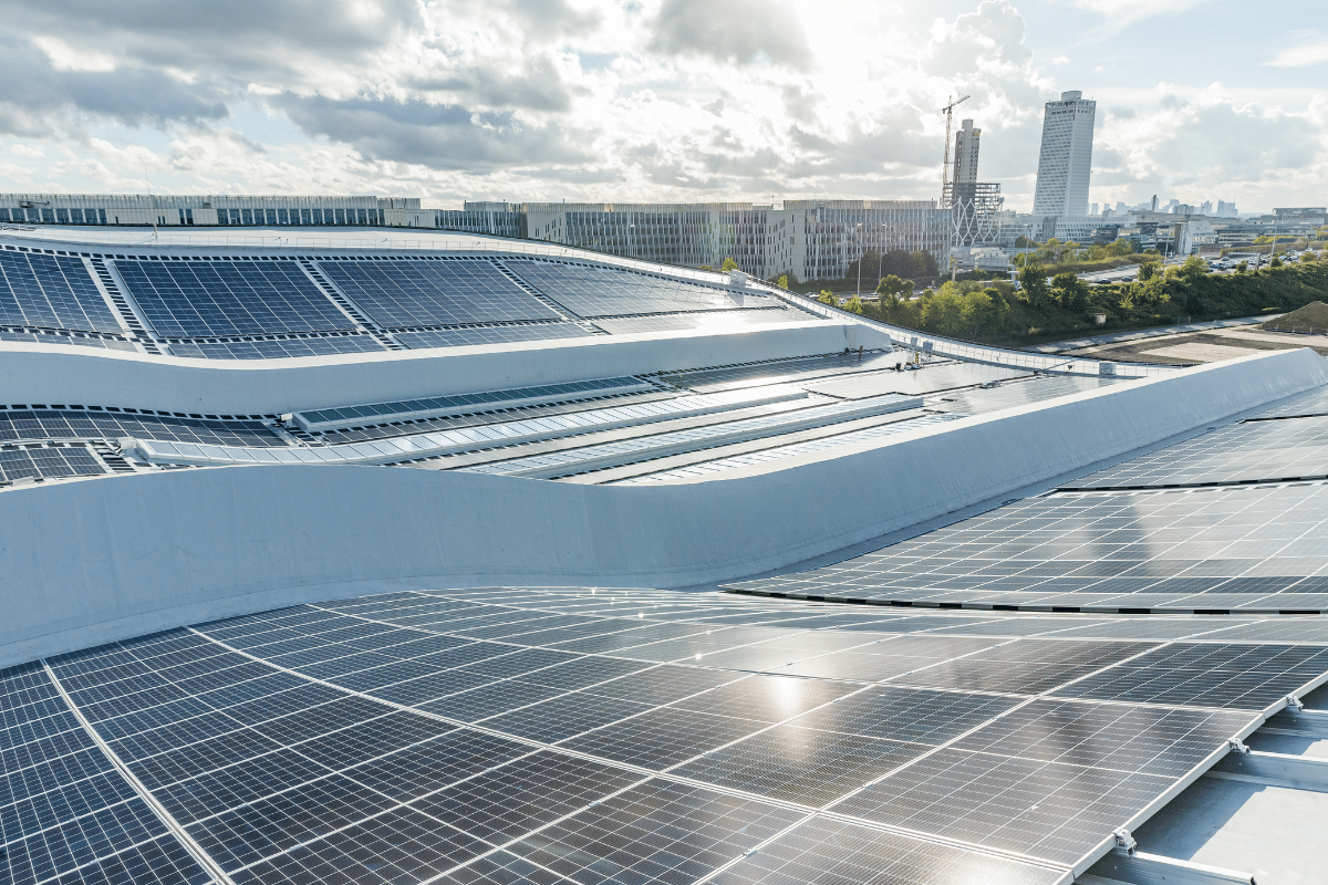 Our Roof-Solar EVALON system on the Olympic swimming pool of Saint-Denis