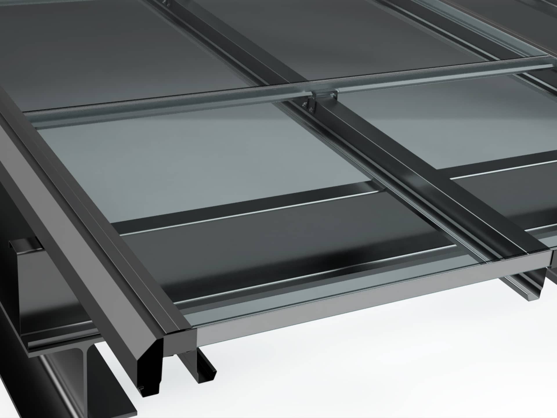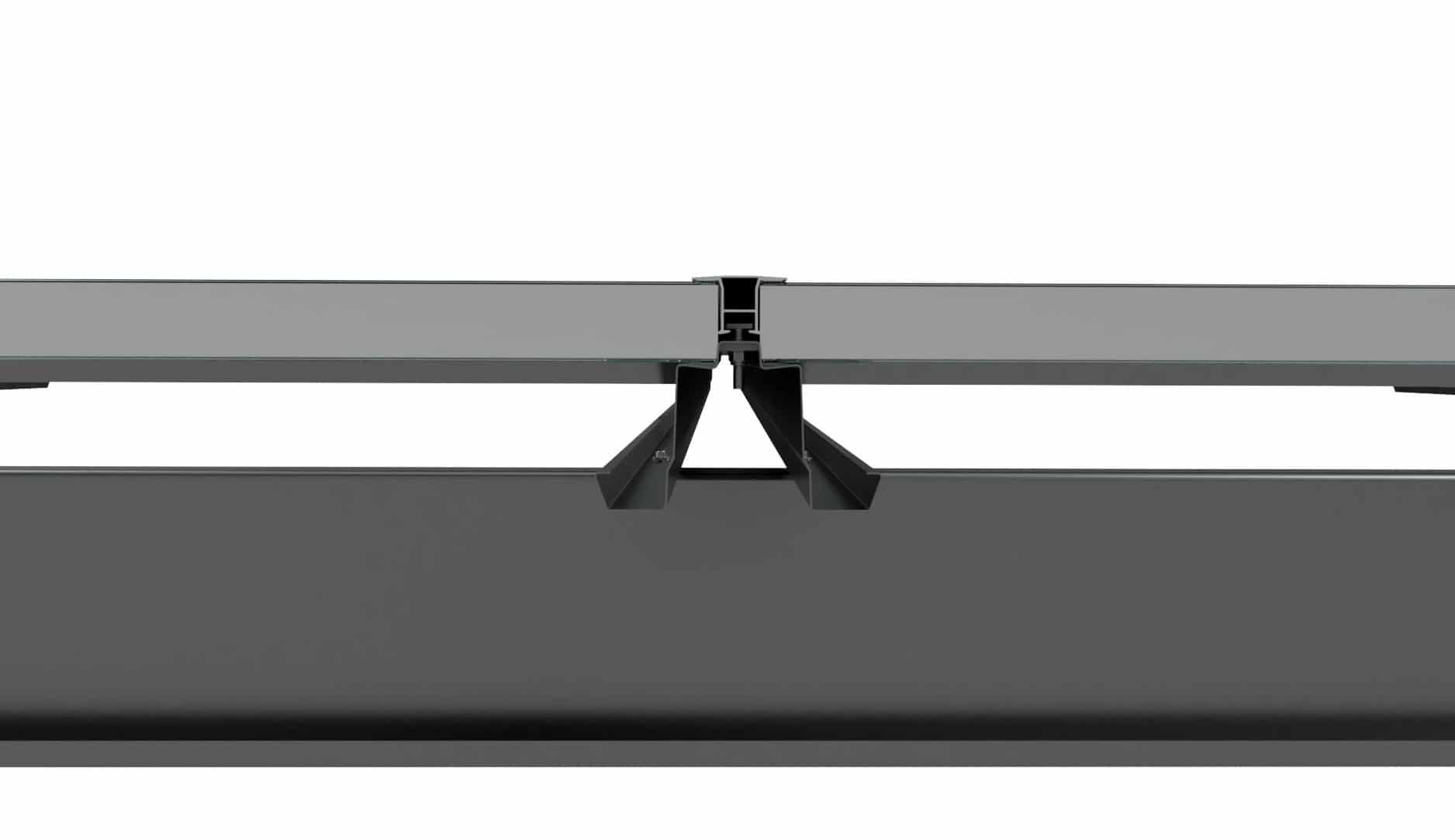 Once Omega Rails have been fixed to the load-bearing structure, the photovoltaic panels are slid into the columns and attached from underneath. This saves time (no need to install safety devices for working on the roof). In addition, the solar modules are protected from possible cracks that could be caused by the installers. Watertightness is ensured by water drainage around the edge of the solar panels.