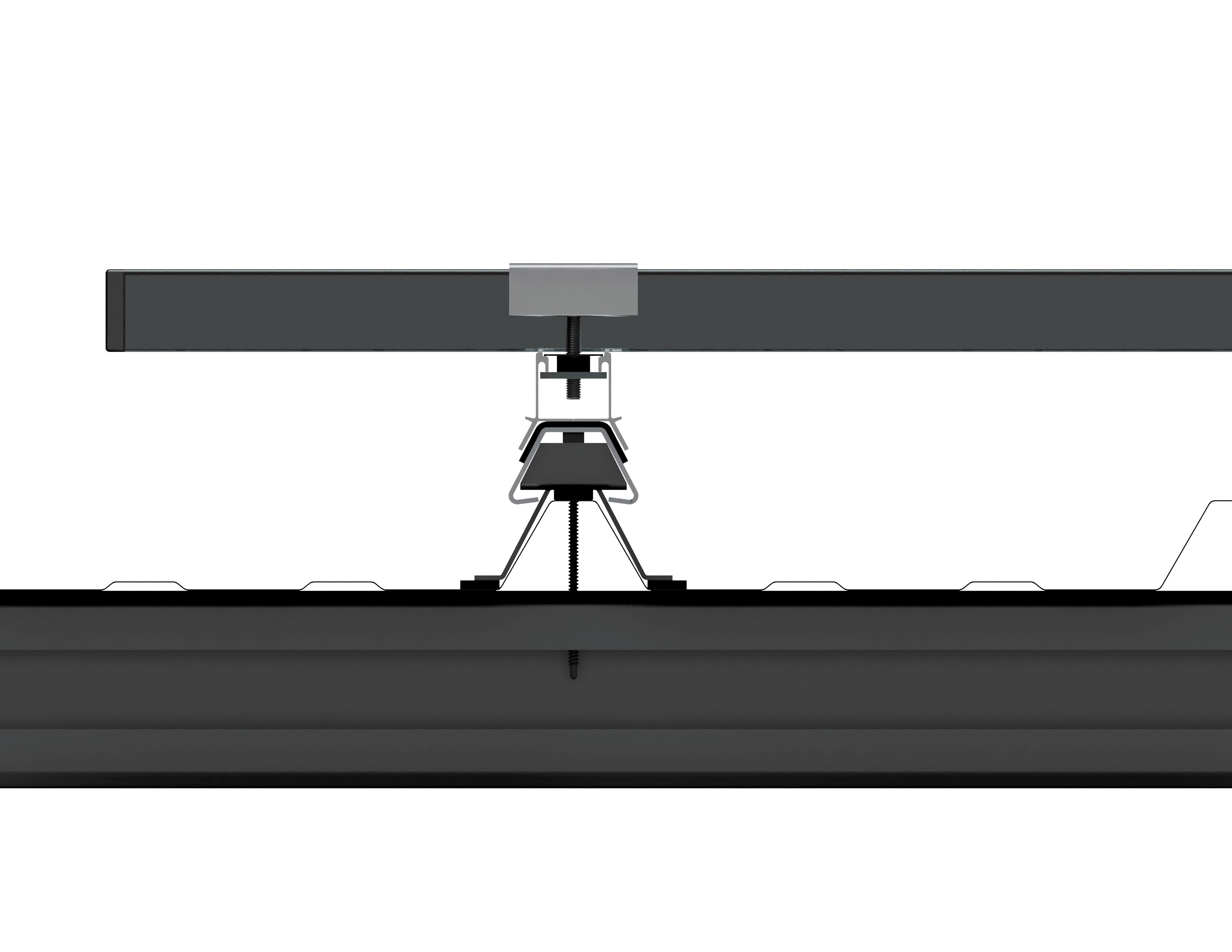 Kogysun + is designed to be fixed to the building’s purlins. The loads are evenly distributed so that the deck is not stressed. In addition, the Kogysun + photovoltaic mounting does not require any additional drilling into the deck. This mounting system is fixed in the same place as the lag screw that attaches the deck to the purlin.