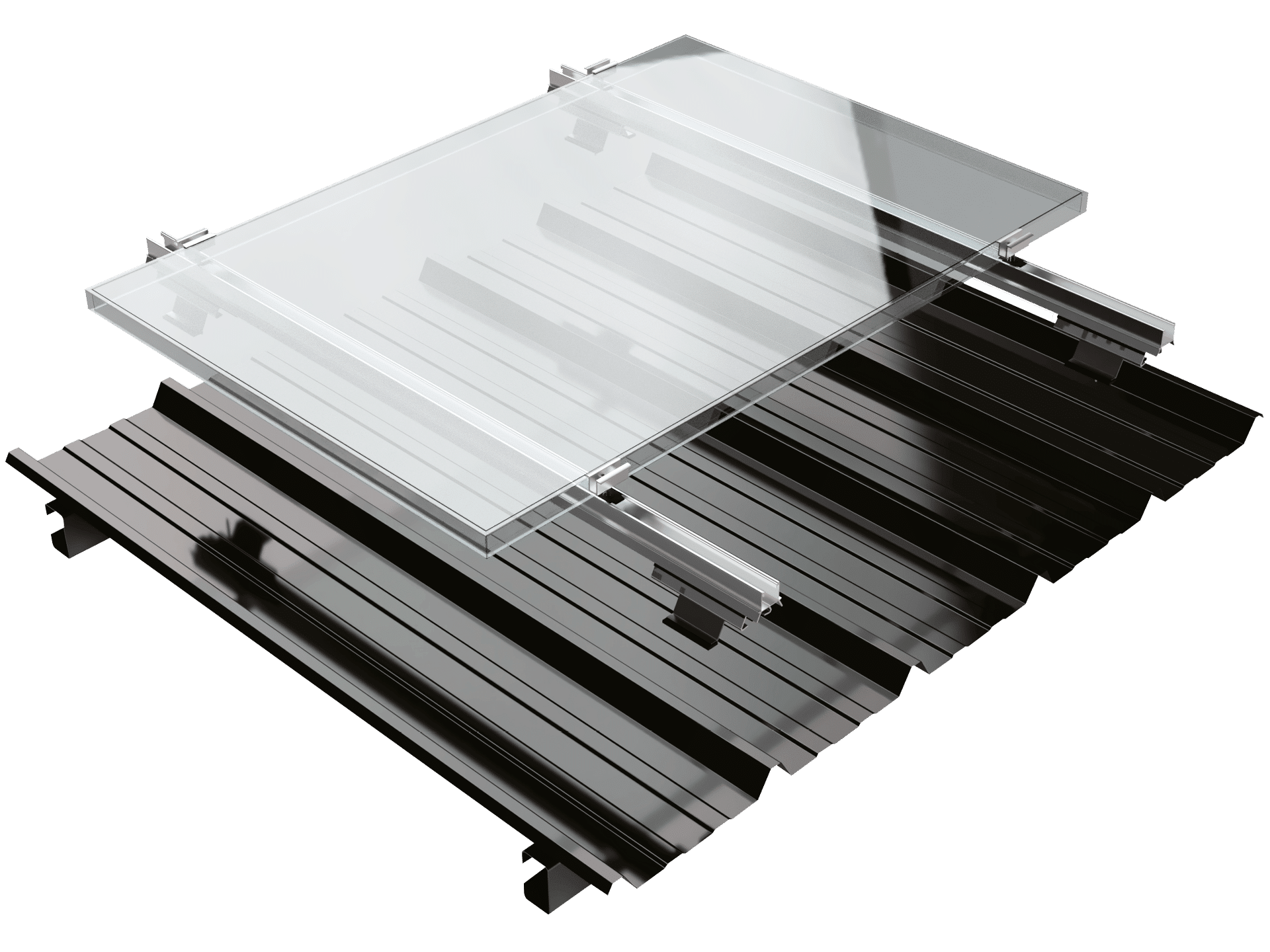 Kogysun + is a photovoltaic mounting system for installing solar panels on sloping roofs. It is used on buildings with uninsulated roof deck (steel deck with trapezoidal profile) and is on the Green List of the Product Prevention Commission (C2P) of the Construction Quality Agency (AQC).