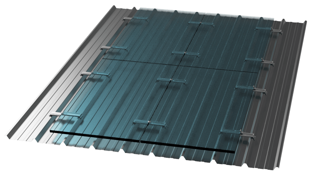 The NPO 3.45 system is an all-stainless steel solution, robust and resistant to corrosion. Designed with a side fixation on the wave of the steel deck, it guarantees the longevity of your photovoltaic installation, even in challenging environments.