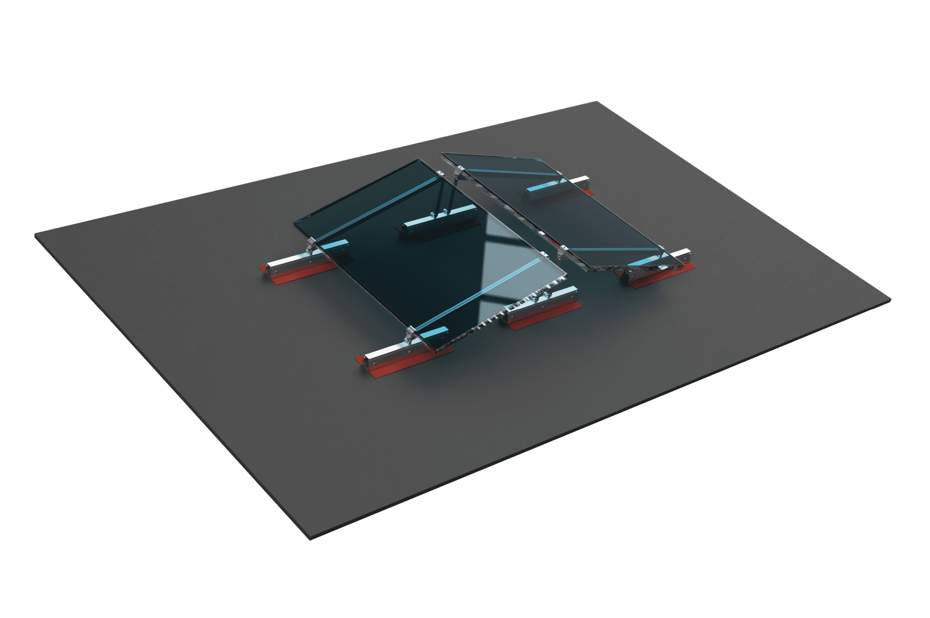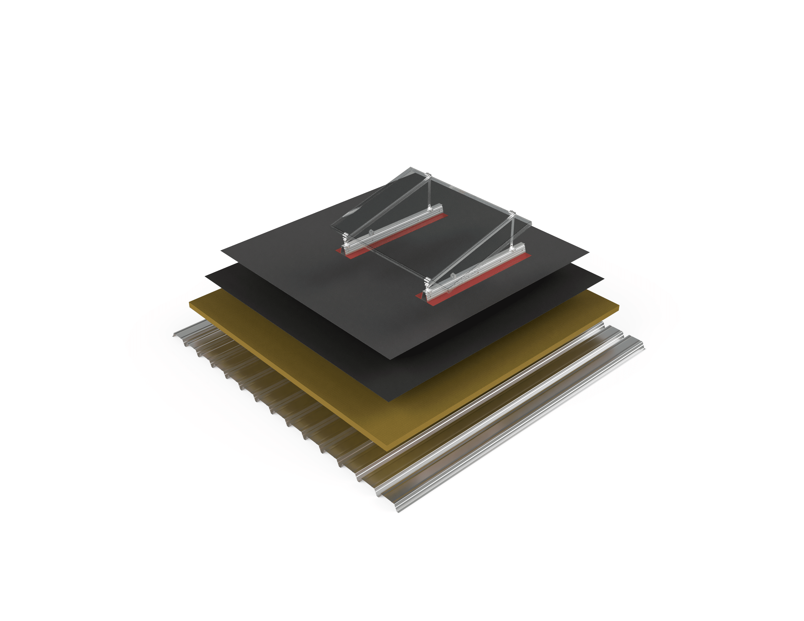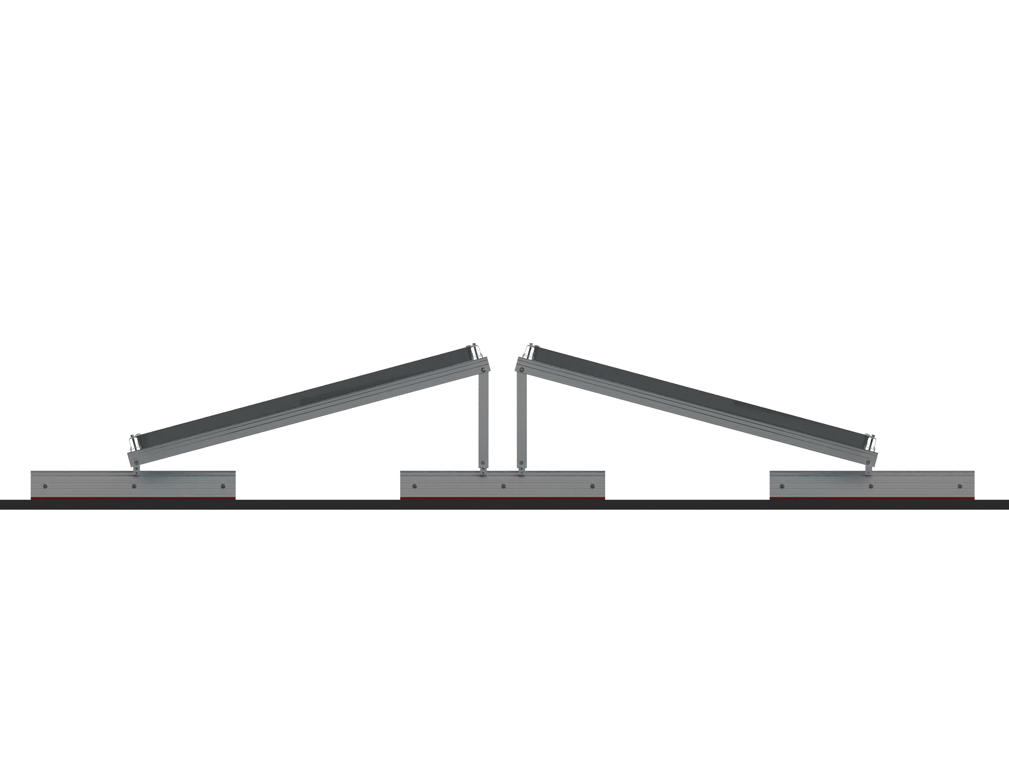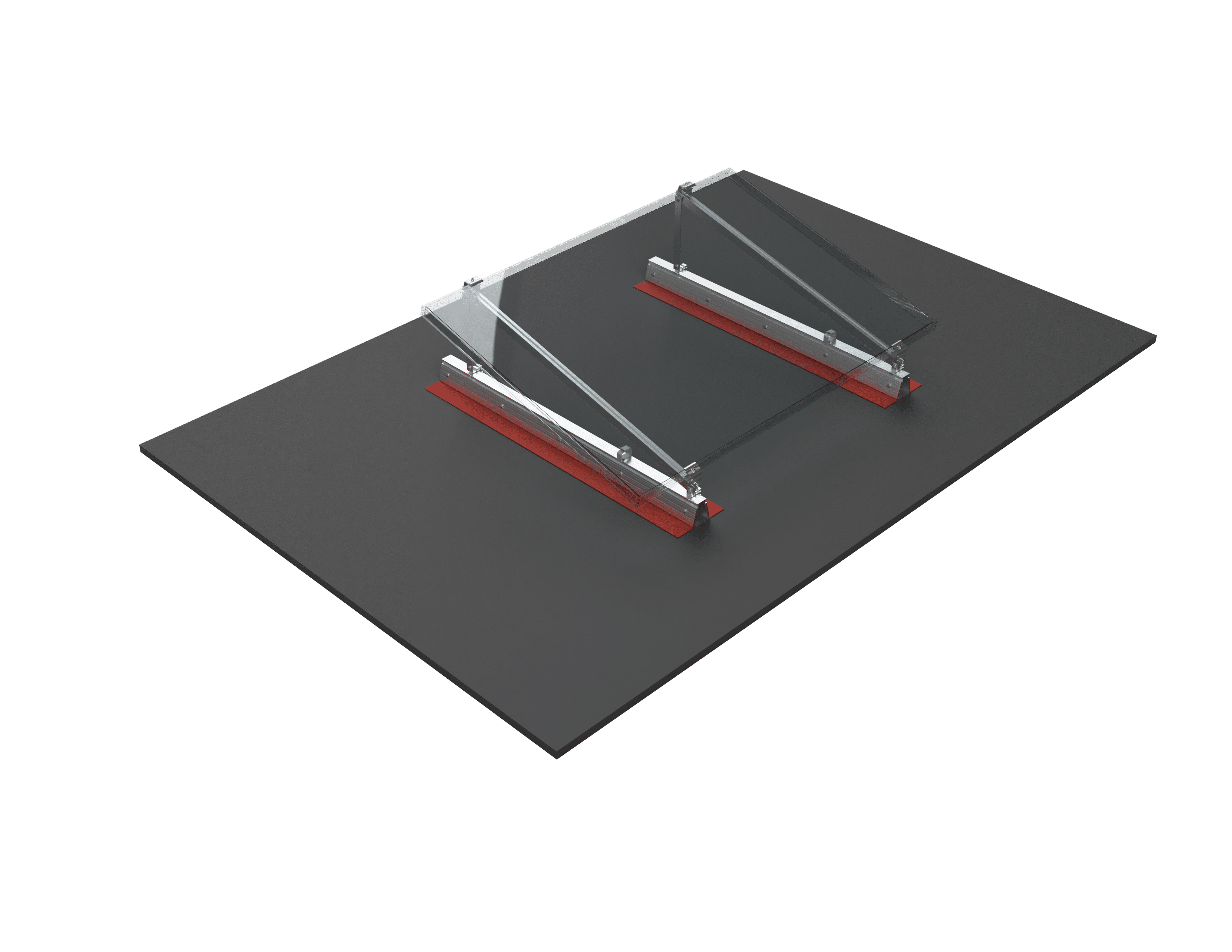 Roof-Solar Tilted Bitumen is a mounting system for installing photovoltaic panels on flat roofs. It is used on buildings with bitumen waterproofing roofs.. Without ballasting or perforation of the membrane, the installation of photovoltaic panels is facilitated.