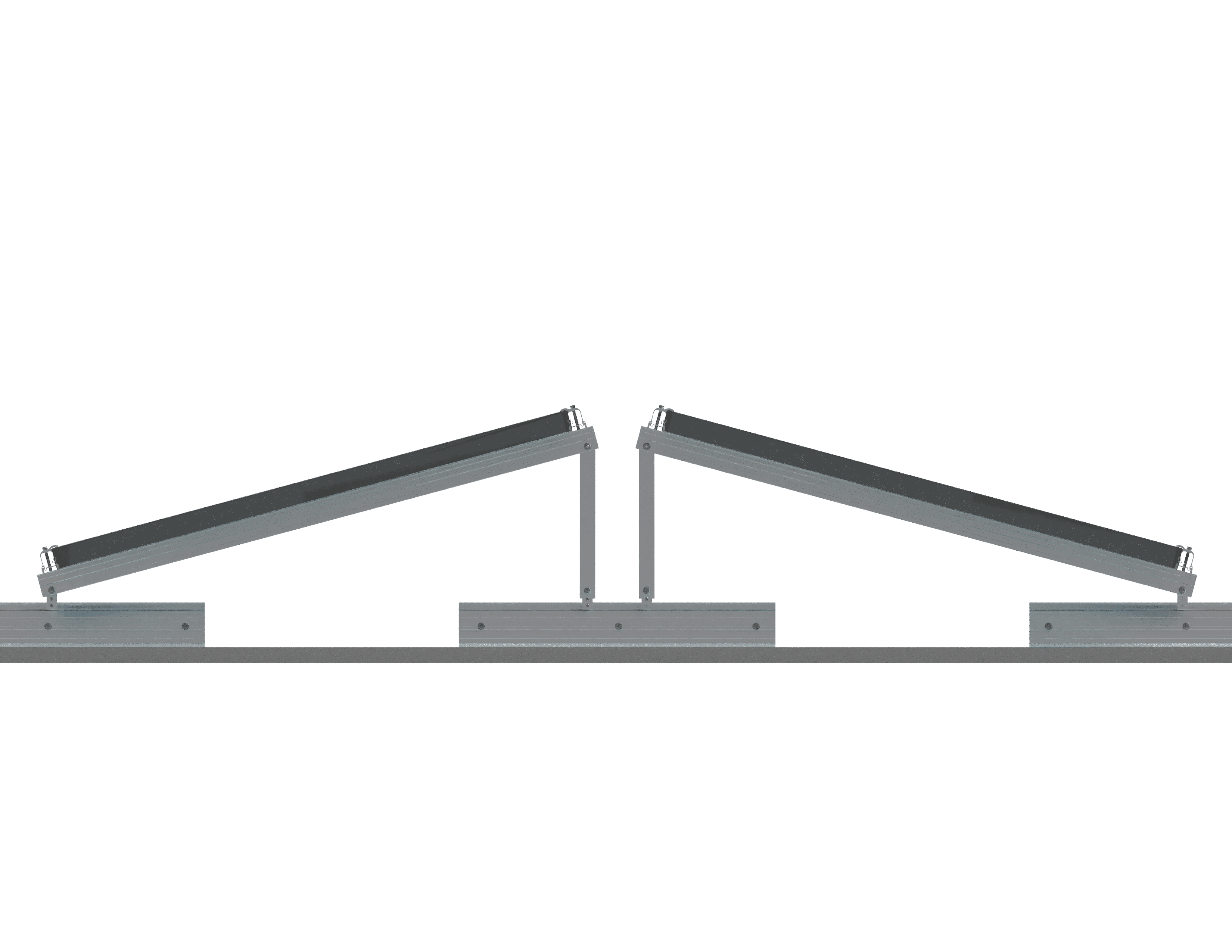 The tilting structure can be assembled prior to mounting on the roof. Light and easy to handle, it is attached to the rail in just a few seconds and gives you the option to tilt your solar panels at 10°. If you want a different tilting angle, this will require a custom-made structure.
