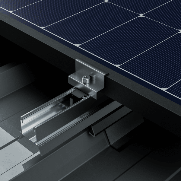 A solar mounting system fixed into the purlins – the most frequently installed in Europe.
