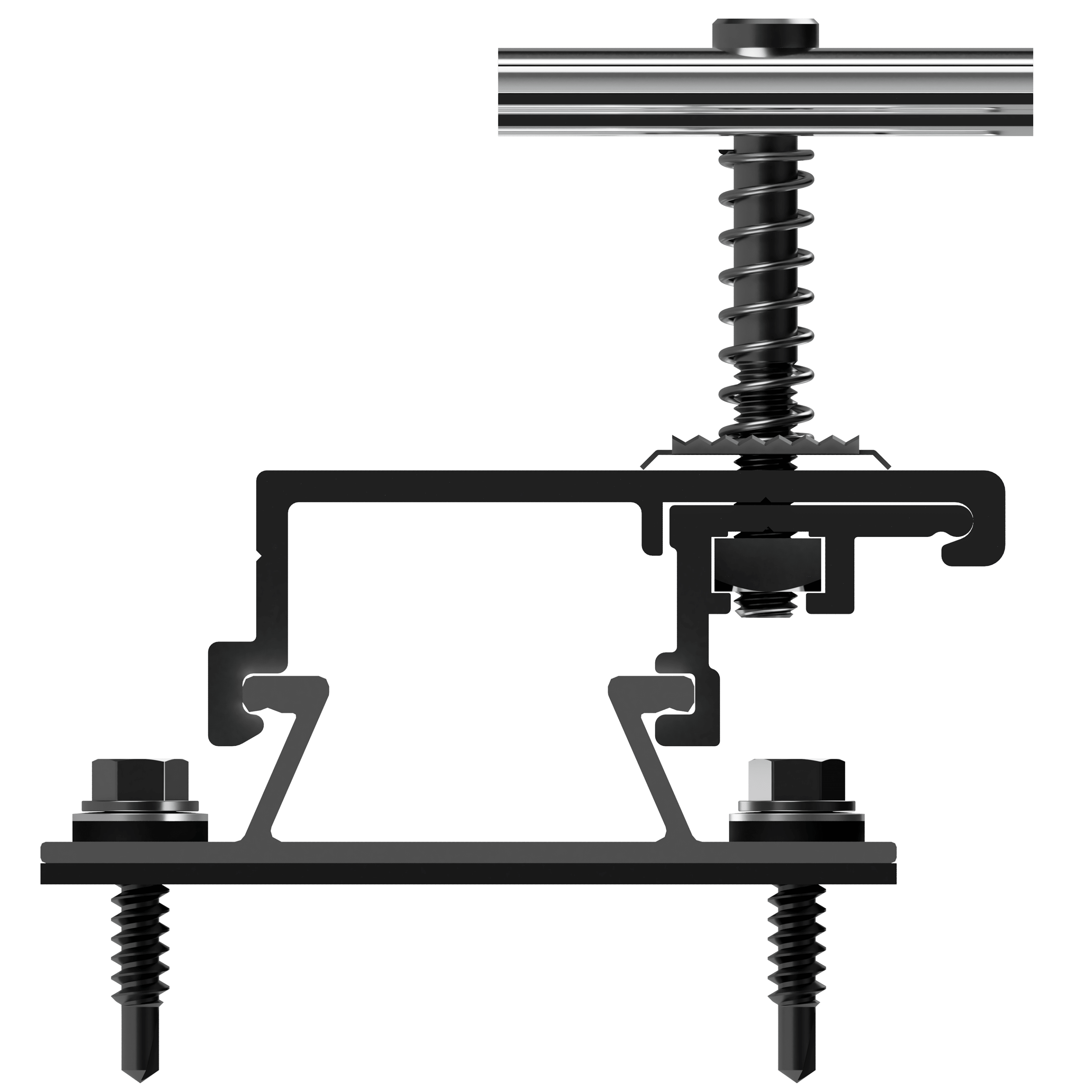 Sa simplicité se traduit par une mise en oeuvre facile grâce au clipsage de la fixation sur le mini rail (36 cm). Celle-ci coulisse librement sur le rail de sorte à vous apporter l’aisance nécessaire lors de la pose de vos panneaux solaires.
