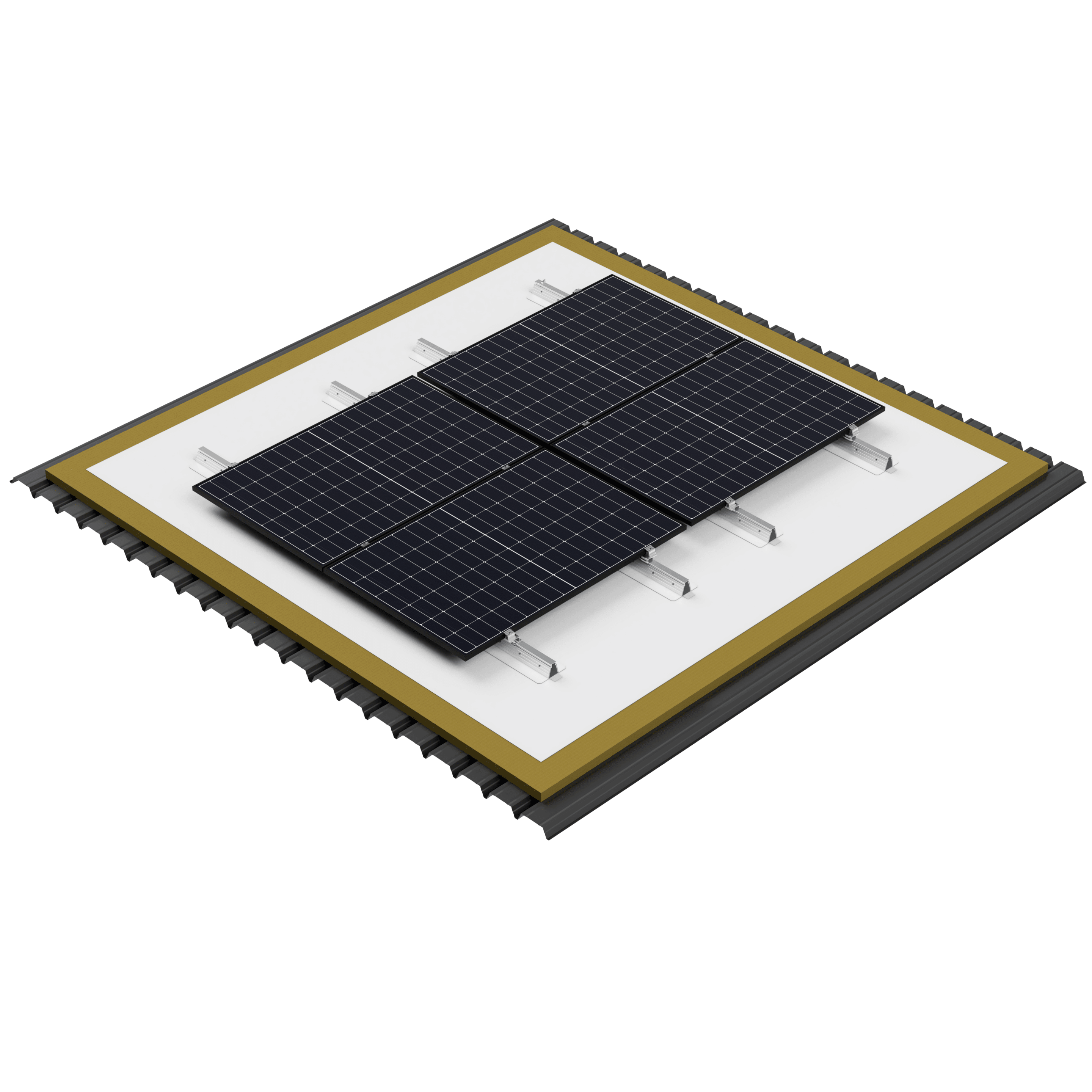 Roof-Solar EVALON permet la pose des panneaux solaires en toiture de sorte à ce que la charge ajoutée sur la structure du bâtiment soit la plus faible possible. Les rails pré-montés avec les bandes de maintien en EVALON Dual sont thermo-soudés à la membrane synthétique. Aucun lestage n’est donc nécessaire.