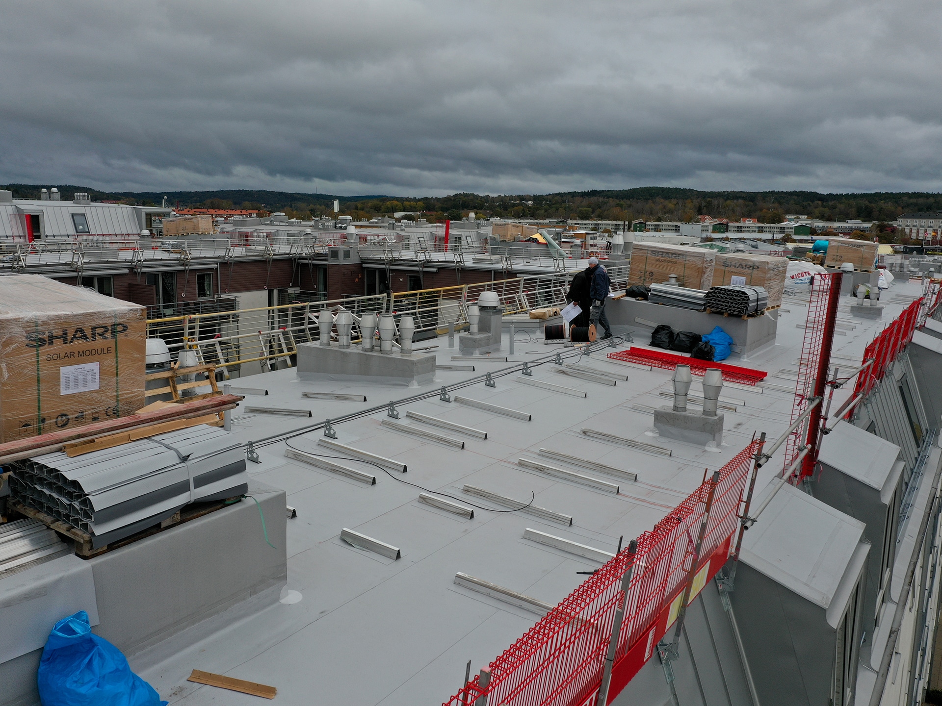 InstallATION DE PANNEAUX SOLAIRES SUR UNE TOITURE PLATE EN PVC