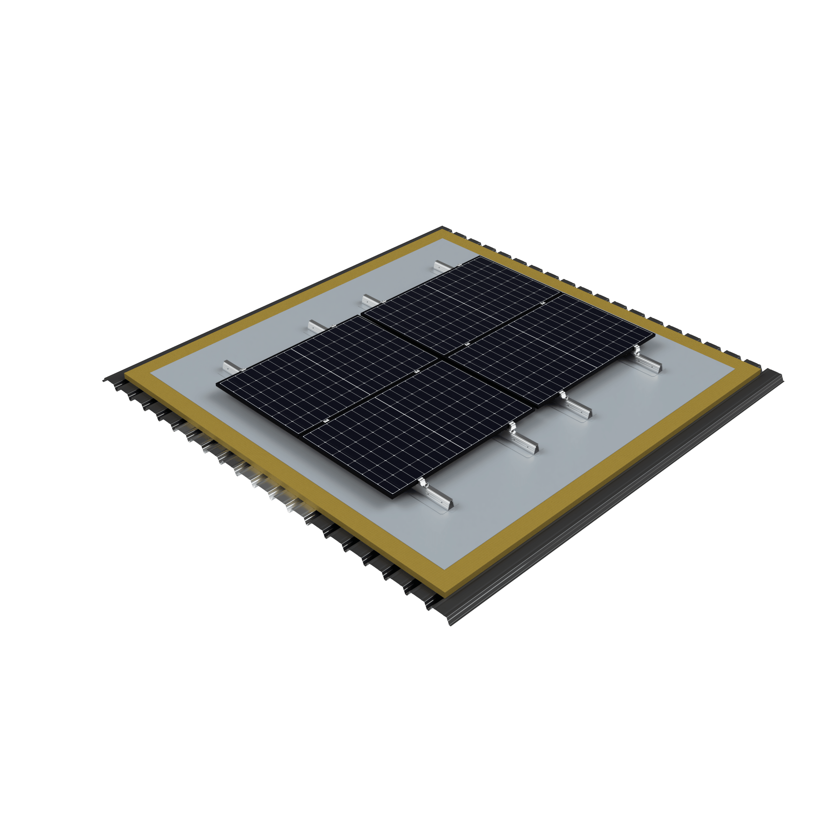 Dédié à la pose de panneaux solaires, Roof-Solar PVC est un système de fixation photovoltaïque sur toitures terrasses. Il est dédié aux bâtiments dont la toiture est composée d’une membrane synthétique PVC. Sans lestage ni perforation de la membrane, la pose de panneaux photovoltaïques n’en est que facilitée.
