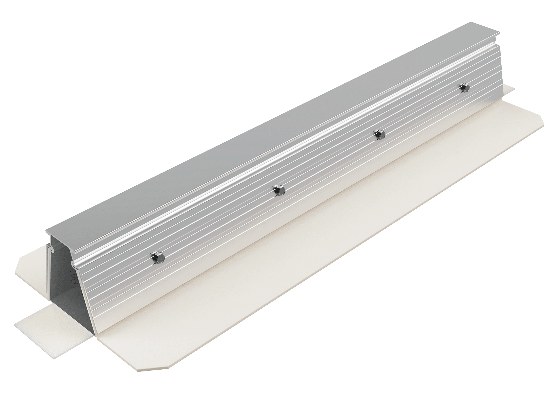 Roof-Solar TPO permet la pose de panneaux solaires en toiture de sorte à ce que la charge ajoutée sur la structure du bâtiment soit la plus faible possible. Les rails pré-montés avec les bandes de maintien en TPO sont thermo-soudés à la membrane synthétique TPO. Aucun lestage n’est donc nécessaire.